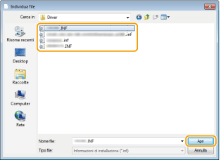Specificare la cartella contenente i driver, selezionare il file Inf e fare clic su [Apri].