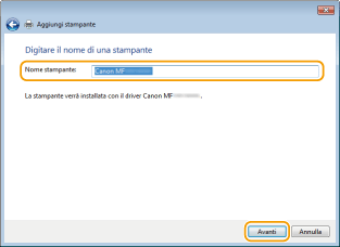 Cambiare il nome della stampante se necessario e fare clic su [Avanti].