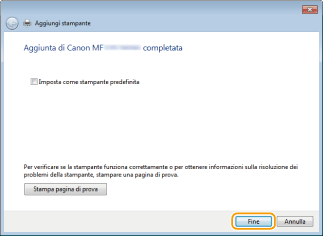 Se si desidera condividere la stampante, eseguire le impostazioni di condivisione per la stampante aggiunta con