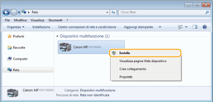 Fare clic con il tasto destro del mouse sull'icona della nuova stampante aggiunta quindi fare clic su [Installa].