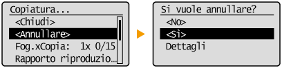 Annullare l'operazione dalla schermata visualizzata durante la copia