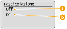 Quando si preparano più copie di documenti con più pagine, impostare <Fascicolazione> su <On> per fascicolare le copie in ordine sequenziale di pagina. Questa funzione è utile quando si preparano documenti da distribuire durante meeting o presentazioni.