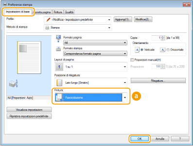 Scheda [Impostazioni di base] Selezionare [Fascicolazione] o [Raggruppamento] in [Finitura] [OK]