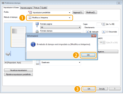 Selezionare [Modifica e Anteprima] in [Metodo di stampa].
