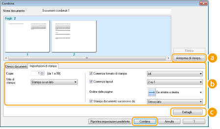 Se necessario, modificare le impostazioni e fare clic su [Combina].