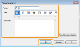 Immettere il nome del profilo in [Nome], selezionare un'icona, quindi fare clic su [OK].