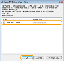 Manuali inclusi con la macchina). Per eseguire la connessione tramite LAN wireless o cablata è necessario registrare la macchina in MF Network Scan Utility. Eseguire la registrazione seguendo la procedura descritta. Questa procedura non è necessaria se la macchina e il computer sono collegati tramite USB.