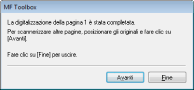 Se vi sono ulteriori pagine del documento da digitalizzare, posizionare il documento successivo sul vetro di lettura e fare clic su [Avanti].