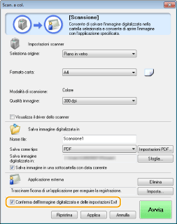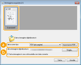 Quando la scansione è completa, i documenti acquisiti sono salvati in una cartella del computer o inoltrati ad un'applicazione. Configurazione delle impostazioni di memorizzazione Definizione di applicazioni per il trasferimento di dati acquisiti