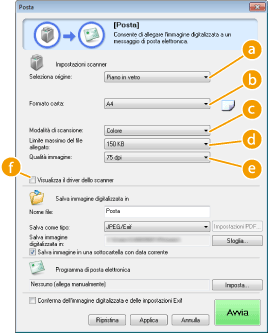 Il documento digitalizzato viene convertito in immagine JPEG/Exif. Questa impostazione è disponibile quando è selezionato [Livelli di grigio], [Colore] o [Colore (rivista)] per [Modalità di scansione] (Configurazione delle impostazioni di scansione).