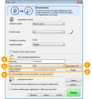 ), [Salva immagine digitalizzata in] passa a [Crea file PDF basato su]. In questo caso specificare un file PDF esistente al quale si desidera aggiungere i nuovi dati del documento acquisiti. I dati sono aggiunti al file esistente come pagine addizionali (Aggiunta di pagine a un file PDF esistente).