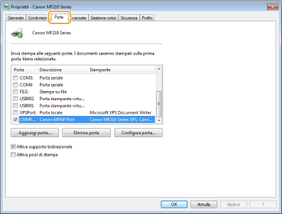 Selezionare la scheda [Porte] e configurare le impostazioni necessarie.
