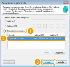 Se i protocolli di stampa (Configurazione dei protocolli di stampa e delle funzioni WSD) o i numeri di porta (Modifica dei numeri di porta(MF212w)) sono stati cambiati sulla macchina, anche le impostazioni corrispondenti sul computer devono essere configurate. Questa modifica è disponibile solo per porte LPR o RAW.