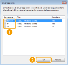 ![]() Selezionare driver aggiuntivi di seguito, in base al sistema operativo del server di stampa.