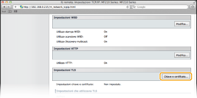 Fare clic su [Chiave e certificato...] in [Impostazioni TLS].