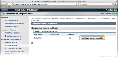 Fare clic su [Registrazione chiave predefinita] a destra della coppia di chiavi che si desidera utilizzare.