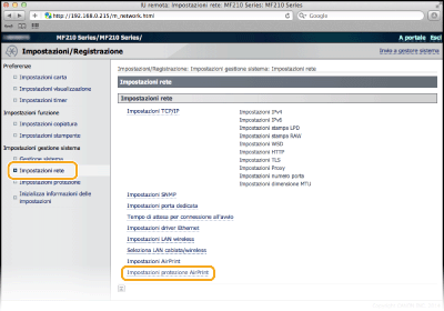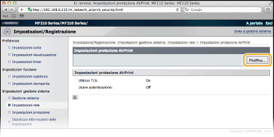 Fare clic su [Impostazioni rete]  [Impostazioni protezione AirPrint].