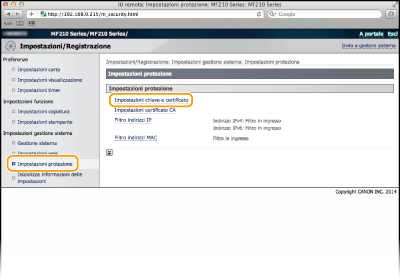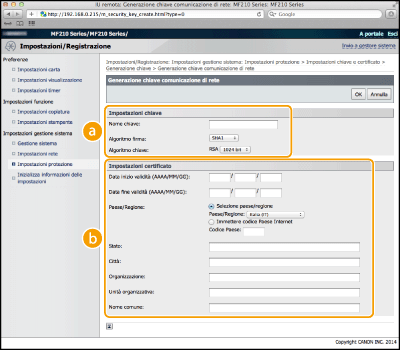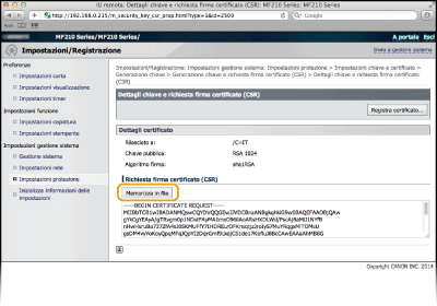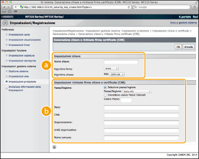 [Impostazioni richiesta firma chiave e certificato (CSR)]