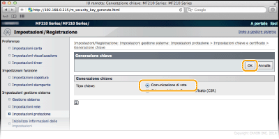 Selezionare [Chiave e richiesta firma certificato (CSR)] e fare clic su [OK].