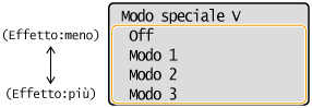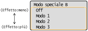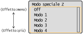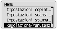 Tutte le impostazioni della regolazione e della manutenzione sono elencate con una breve descrizione. Le impostazioni predefinite sono contrassegnate con una croce (