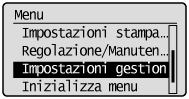Tutte le impostazioni delle Impostazioni di gestione del sistema sono elencate con una breve descrizione. Le impostazioni predefinite sono contrassegnate con una croce (