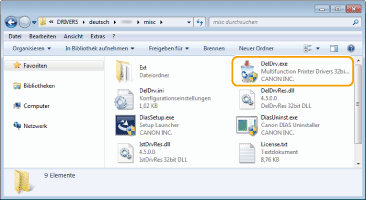 1 | Legen Sie die User Software and Manuals CD-ROM/DVD-ROM in das Laufwerk des Computers ein. Um den Uninstaller über die MF-Treiberdatei zu starten, die Sie heruntergeladen haben, führen Sie folgenden Schritt durch.