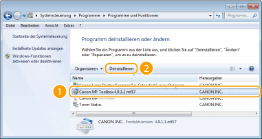Wählen Sie MF Toolbox aus, und klicken Sie auf [Deinstallieren] oder [Entfernen].