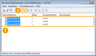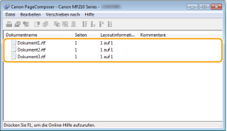 Die Dokumente werden zu Canon PageComposer hinzugefügt.
