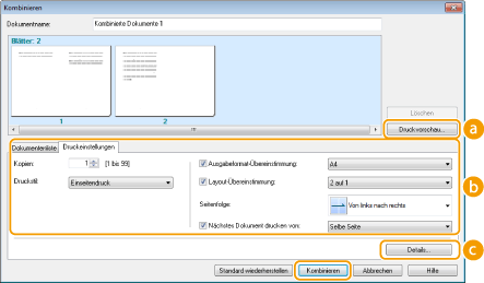 Ändern Sie gegebenenfalls die Einstellungen, und klicken Sie auf [Kombinieren].