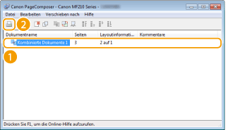 Mit Canon PageComposer können Sie mehrere Dokumente zu einem Druckauftrag zusammenfassen und diesen mit bestimmten Druckeinstellungen drucken. Mit dieser Funktion können Sie beispielsweise Dokumente, die mit unterschiedlichen Anwendungen erstellt wurden, zusammenfassen und alle Seiten im selben Papierformat drucken.