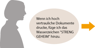 Legen Sie "STRENG GEHEIM" als Wasserzeichen fest, und speichern Sie es unter den "Profilen". Sie können dieses Wasserzeichen dann aus den Profilen auswählen, sobald Sie es benötigen. Speichern von Kombinationen häufig benutzter Druckeinstellungen