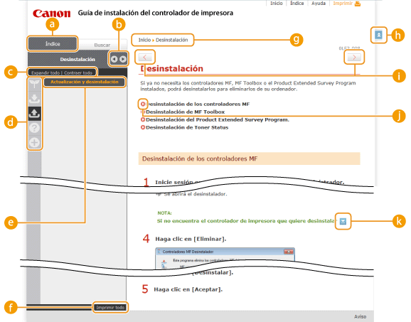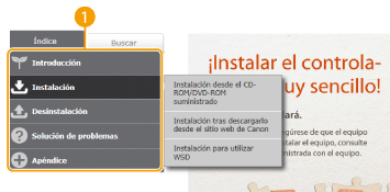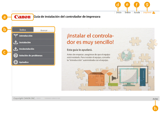[Ayuda]Haga clic para mostrar información sobre cómo ver la Guía de instalación, cómo realizar una búsqueda y otra información.