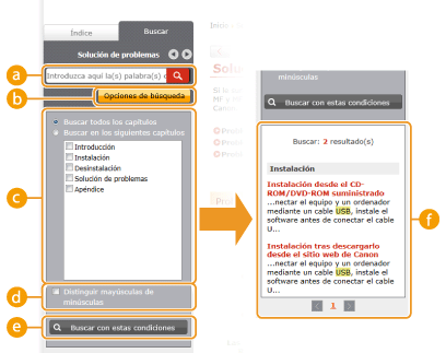 Pestaña [Índice]/pestaña [Buscar]Haga clic para alternar la vista entre las pestañas [Índice] y [Buscar].