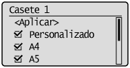 Seleccione un tamaño de papel utilizado frecuentemente y pulse  para ponerle una marca de comprobación.