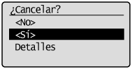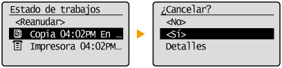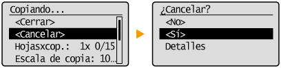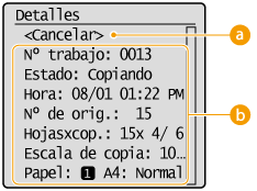 Podrá visualizar el número de copias, la configuración y otros detalles. Si únicamente desea comprobar los detalles sin cancelar la copia, pulse