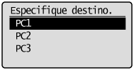 Escanee desde el equipo de una forma más sencillaSi tiene alguna preferencia que utilice de forma regular, como escaneado a color o en blanco y negro, o un ordenador predeterminado en el que guarde los documentos escaneados, puede resultarle complicado especificar estas opciones cada vez que escanee. Registre estas opciones en una tecla [Scan -> PC] para poder escanear con tan solo pulsar una tecla. Escaneado utilizando la tecla [Scan -> PC]