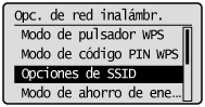 Si la conexión inalámbrica se configura seleccionando un router inalámbrico, el método de autenticación WEP se establece en <Sistema abierto> o el método de cifrado WPA/WPA2 se establece en <Auto> (AES-CCMP o TKIP). Si desea seleccionar <Clave compartida> en la autenticación WEP o <AES-CCMP> en el cifrado WPA/WPA2, debe configurar la conexión utilizando el método de entrada manual ( Configuración de la conexión especificando las opciones detalladas).