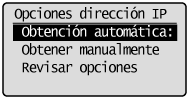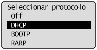 Seleccione <DHCP>, <BOOTP> o <RARP>, y pulse