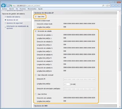 Comprobación de las opciones correctasAsegúrese de que la pantalla de la IU remota pueda mostrarse en el ordenador utilizando la dirección IPv6 del equipo. Inicio de la IU remota