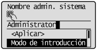 Introduzca hasta 32 caracteres en el nombre del administrador del sistema, seleccione <Aplicar> y pulse