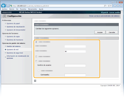 Para habilitar la autenticación a través del servidor proxy, seleccione la casilla de verificación e introduzca hasta 24 caracteres alfanuméricos en el nombre de usuario en el cuadro de texto [Nombre de usuario].