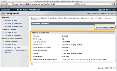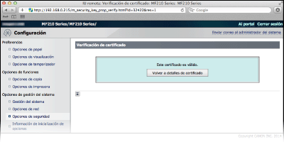 Los detalles del certificado pueden visualizarse en esta pantalla.