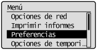 Todas las opciones sobre la pantalla se muestran con descripciones breves. Las opciones predeterminadas aparecen marcadas con una cruz (