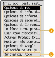 <Opciones de gestión del sistema>