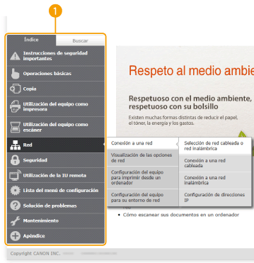 Haga clic para mostrar información sobre cómo ver el e-Manual, cómo realizar una búsqueda y otra información.