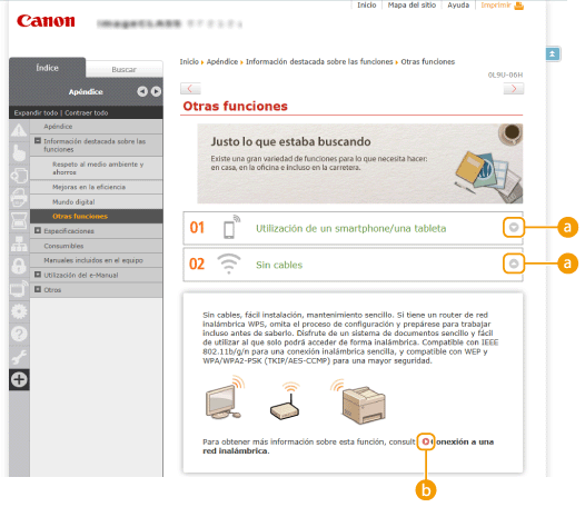 Haga clic en el icono de un capítulo para ir a la parte superior del capítulo en cuestión.