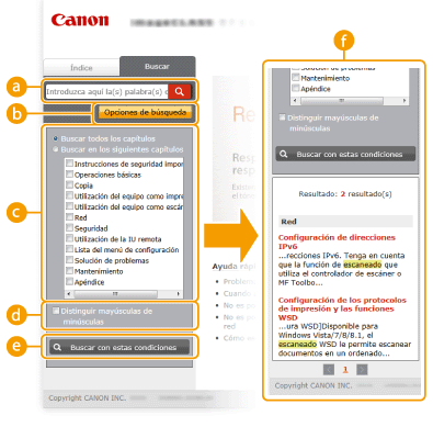 Muestra los resultados de búsqueda de las páginas que contienen las palabras clave especificadas. En los resultados, localice la página que esté buscando y haga clic en el título del tema de la página. Si los resultados no pueden mostrarse en una página, haga clic en
