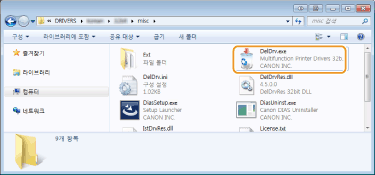 1 | 컴퓨터의 드라이브에 사용자 소프트웨어 및 설명서 DVD-ROM을 넣습니다. 다운로드한 MF 드라이버 파일에서 제거 관리자를 시작하려면, 다음 단계를 따르십시오.