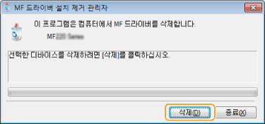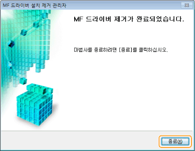 사용자 소프트웨어 및 설명서 DVD-ROM 또는 다운로드한 MF 드라이버 파일에서 제거 관리자를 시작합니다.