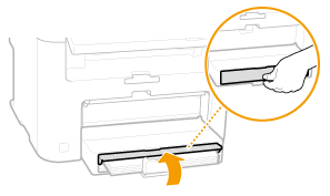용지 뒤쪽 가장자리의 용지 가이드를 확장해야 합니다. 먼지 덮개 확장을 연 후 먼지 덮개를 내립니다.